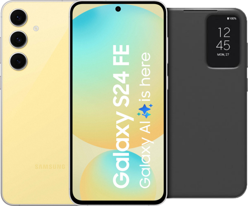 Samsung Galaxy S24 FE 256GB Geel 5G + Clear View Book Case Zwart
