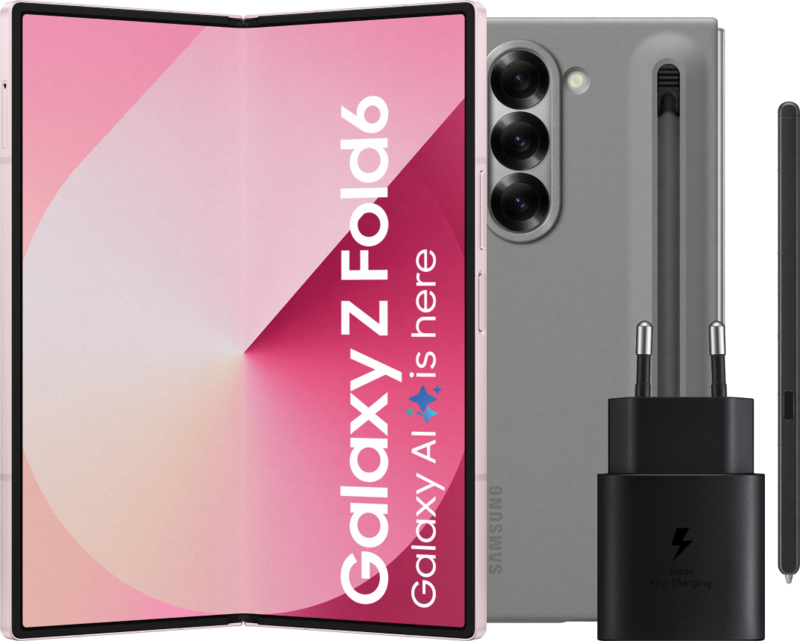 Bescherm je Samsung Galaxy Z Fold 6 256GB Roze 5G tegen schade met de Samsung Back Cover met S Pen Grijs uit het accessoirepakket. Met de oplader uit het pakket laad je jouw smartphone binnen één uur volledig op. Klap de Samsung Fold 6 open en gebruik het 7,6 inch quad hd scherm als kleine tablet. Op het grote scherm kijk je series, speel je games of open je 2 apps naast elkaar. Dichtgeklapt gebruik je het 6,3 inch full hd scherm als normale smartphone. De Samsung Fold 6 is geschikt voor de zwaarste taken, zoals 3D games en beeldbewerking. Op de achterkant van de Samsung Z Fold 6 vind je 3 camera's waar je haarscherpe foto's mee maakt. Met de telelens zoom je zelfs 3 keer in zonder kwaliteitsverlies. De 4.400 mAh batterij gaat bij gemiddeld gebruik een hele dag mee. Je laadt de batterij binnen één uur volledig op met een los verkrijgbare 25 watt snellader. Op het 256 GB opslaggeheugen van de Samsung Fold 6 is ruimte voor je apps, foto's en andere bestanden. Heb je meer ruimte nodig om bijvoorbeeld series en films te downloaden? Kies dan voor de 512 GB variant de Fold 6.