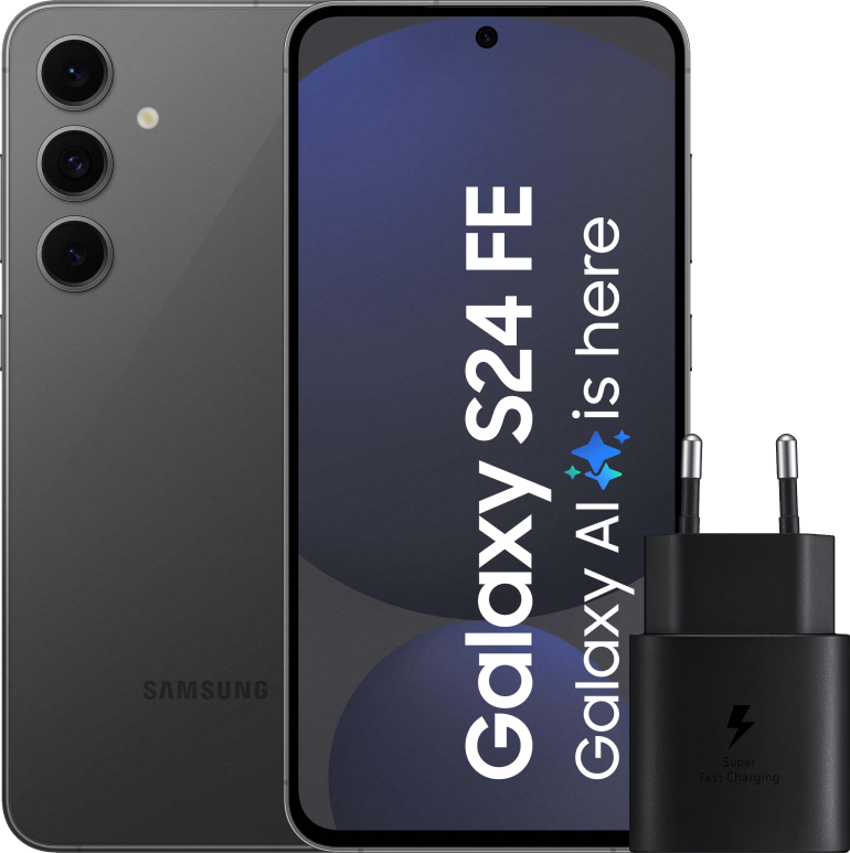 Samsung Galaxy S24 FE 256GB Grijs 5G + Samsung Oplader 25 Watt Zwart